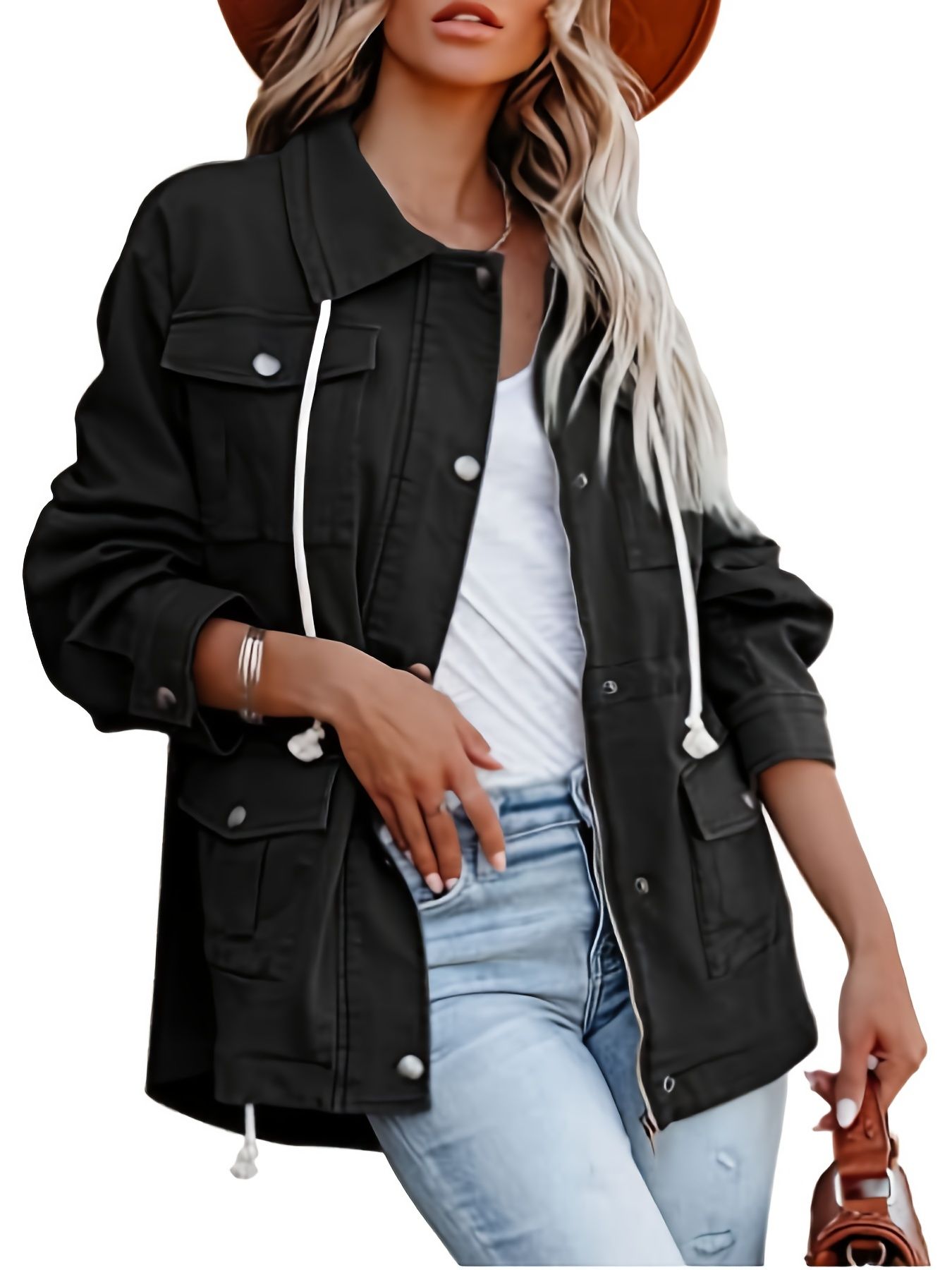 Home > Button Solid Jacket With Pockets; Long Sleeve Casual Every Day Top For Spring & Fall; Women's Clothing