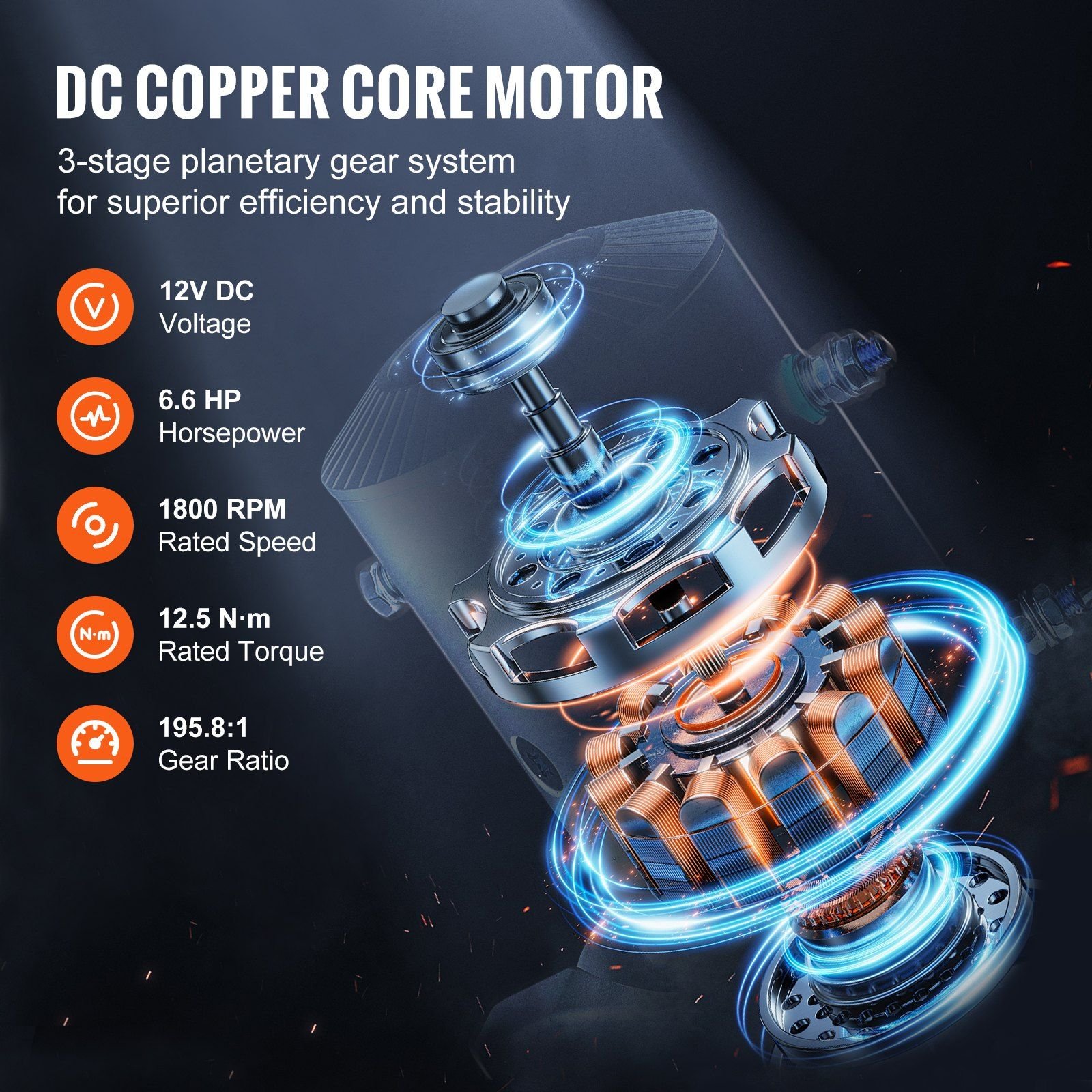 Our electric winch is powered by a robust 12V DC/6.6 HP copper motor, delivering consistent, efficient power every time. With an advanced planetary gear setup and a 195.8:1 gear ratio, you'll enjoy smooth, reliable line pull capacity even in harsh weather conditions or deep mud.